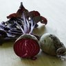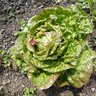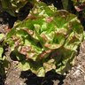 Très jolie petite laitue pommée de couleur verte, rehaussée de taches rouge foncé, présentant de légères cloques le long des feuilles. Très croquante.