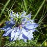 Petite fleur bleue aux semences parfumées, mais à ne pas confondre avec le cumin noir (nigella sativa). Le bleu tendre de ses pétales, ses feuilles finement découpées et la capsule qui contient ses graines en font une plante très décorative. Se resème spontanément.